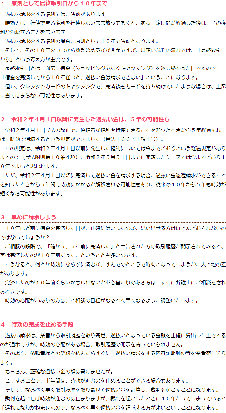 過払い金の時効について